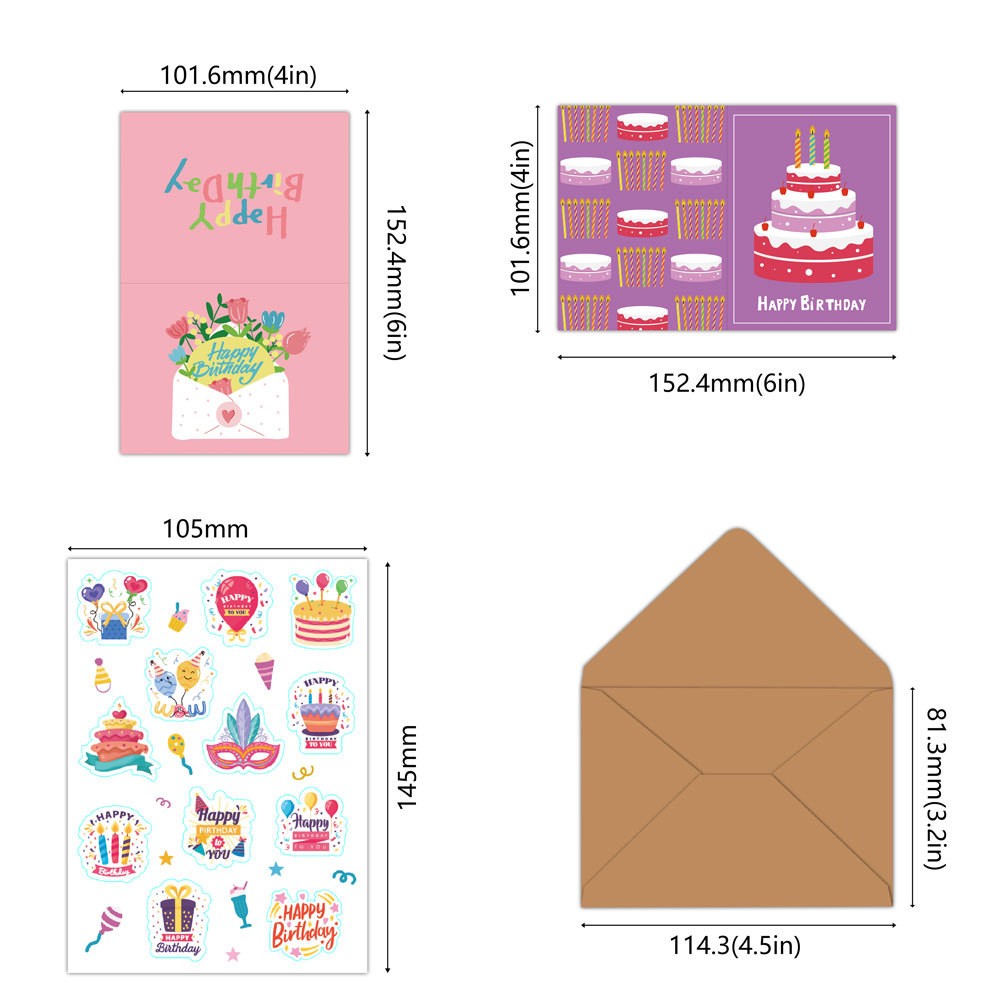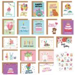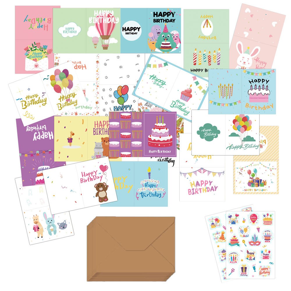 20-Pack Birthday Greeting Cards Set with Envelopes and Stickers,Cartoon Pattern, Multi-Design Paper Cards for Any Recipient