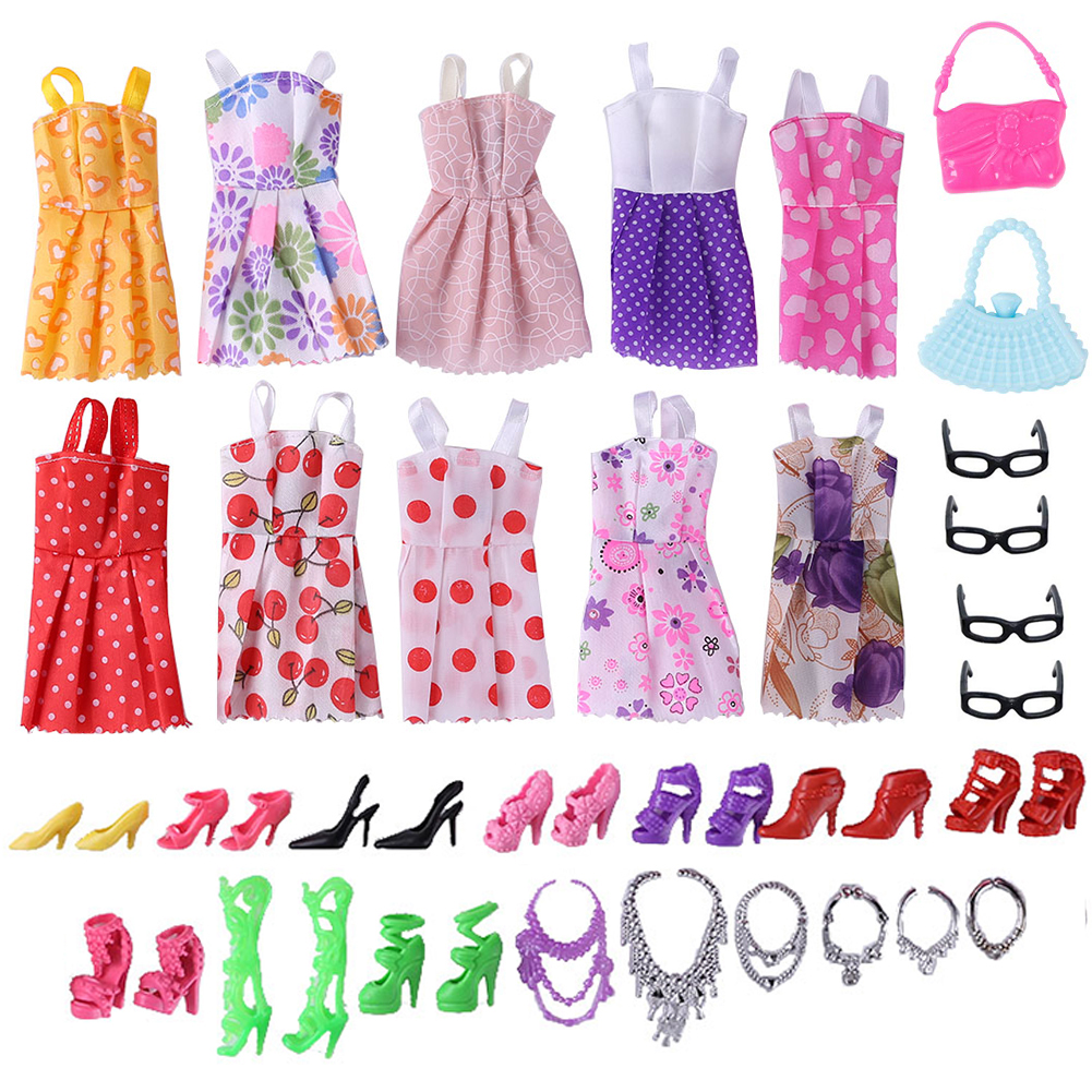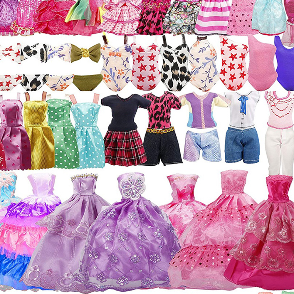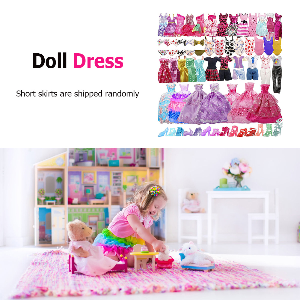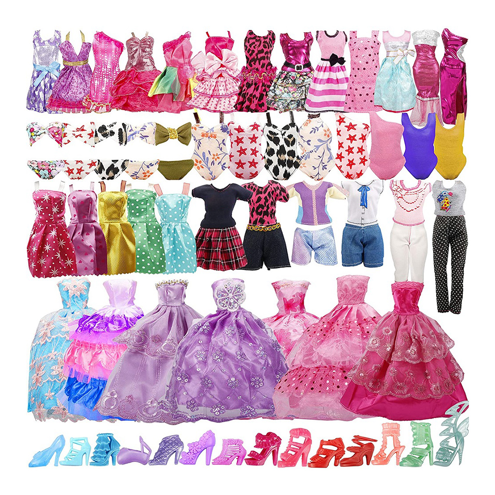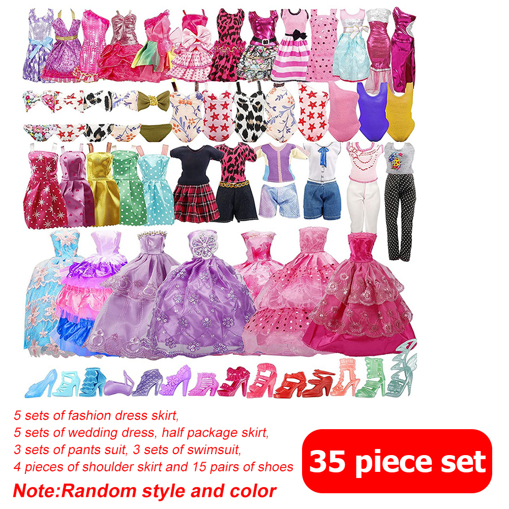 35pcs Random Color Handmade Doll High Heels Mini Swimsuits Wedding Dresses Handbag Outfit DIY Dollhouse Toy Accessories Christmas Birthday Gift for Children