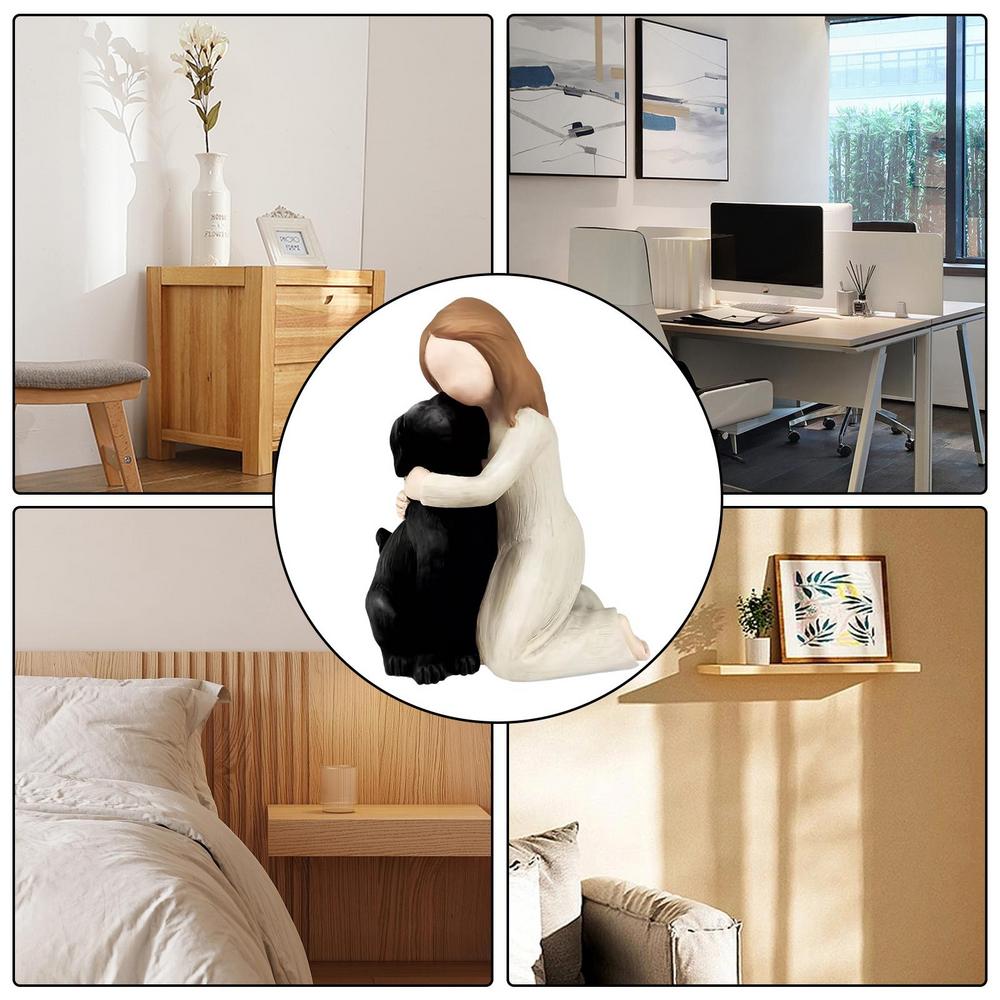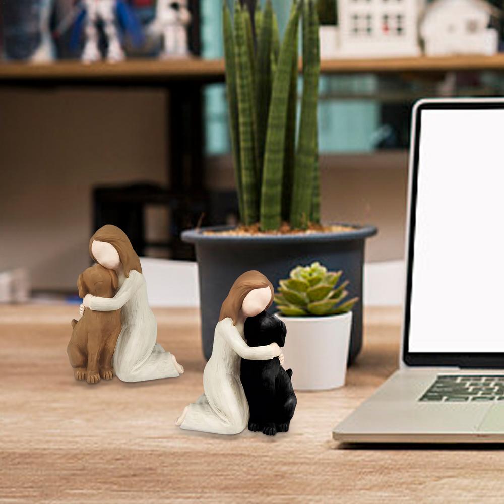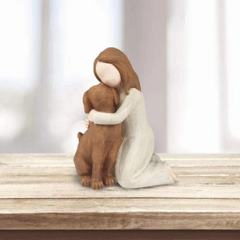 Lovely Girl Hugging Dog Resin Statue Meaningful Figurine Souvenir Tabletop Ornament Home Decoration Memorial Gift For Dog Lovers