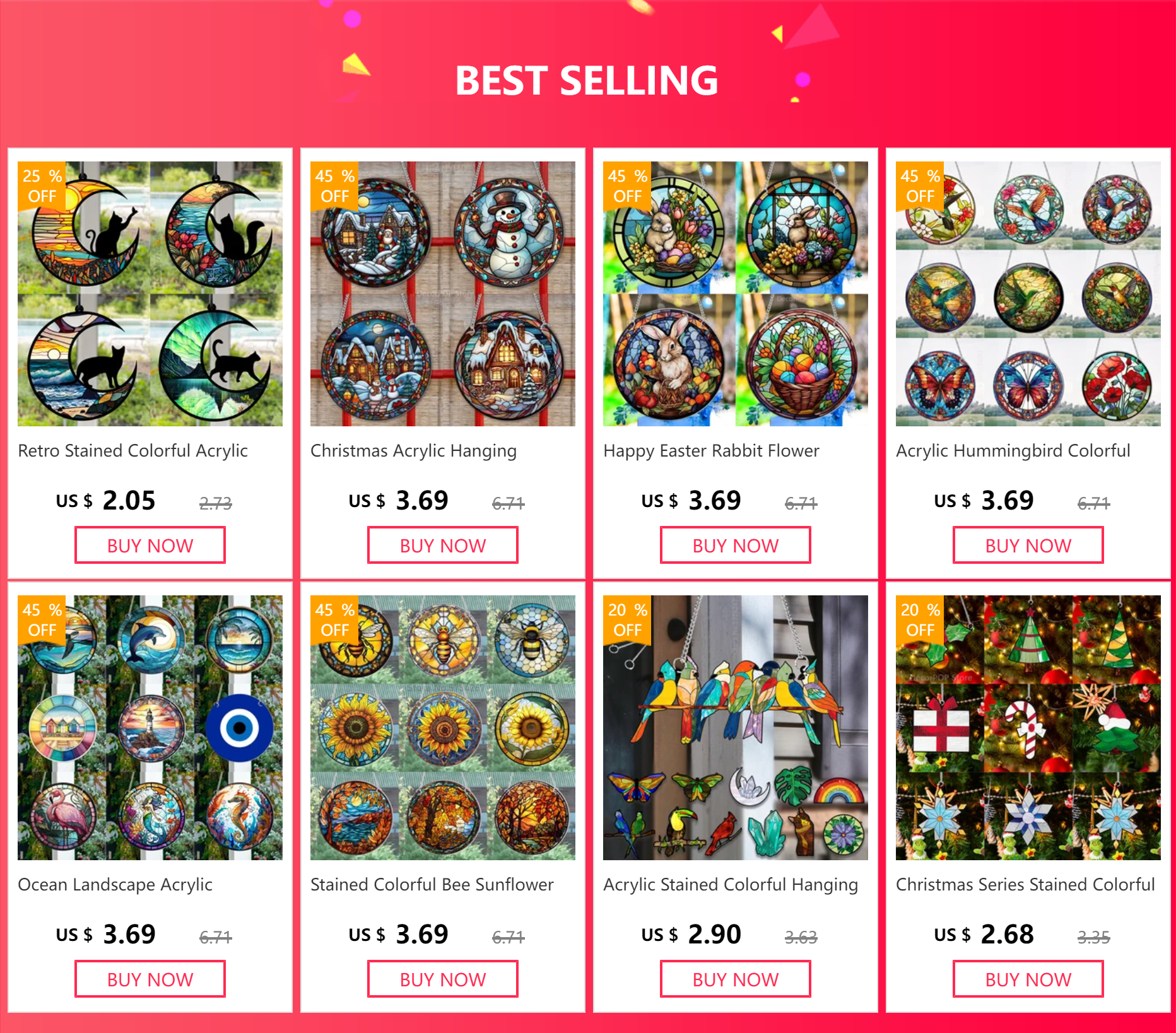 Hanging decorations on windows, as wall art pendants, or as welcome signs on hangers, etc. They add brilliant colors in any space.